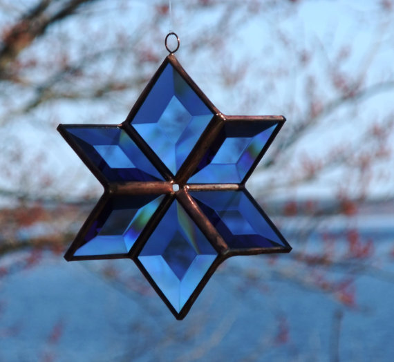 blue stained glass star Published January 15, 2018 at 570 × 524 in January Blues ← Previous Next → https://www.etsy.com/ca/listing/44865552/stained-glass-star-suncatcher-sculptural?