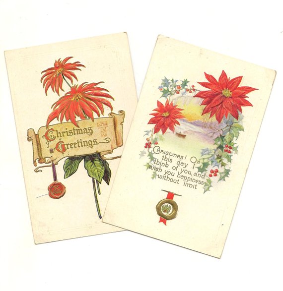 pair vintage postcards Published December 12, 2018 at 570 × 587 in Dec 12th National Poinsettia Day ← Previous Next → https://www.etsy.com/ca/listing/169918346/pair-of-embossed-vintage-christmas?